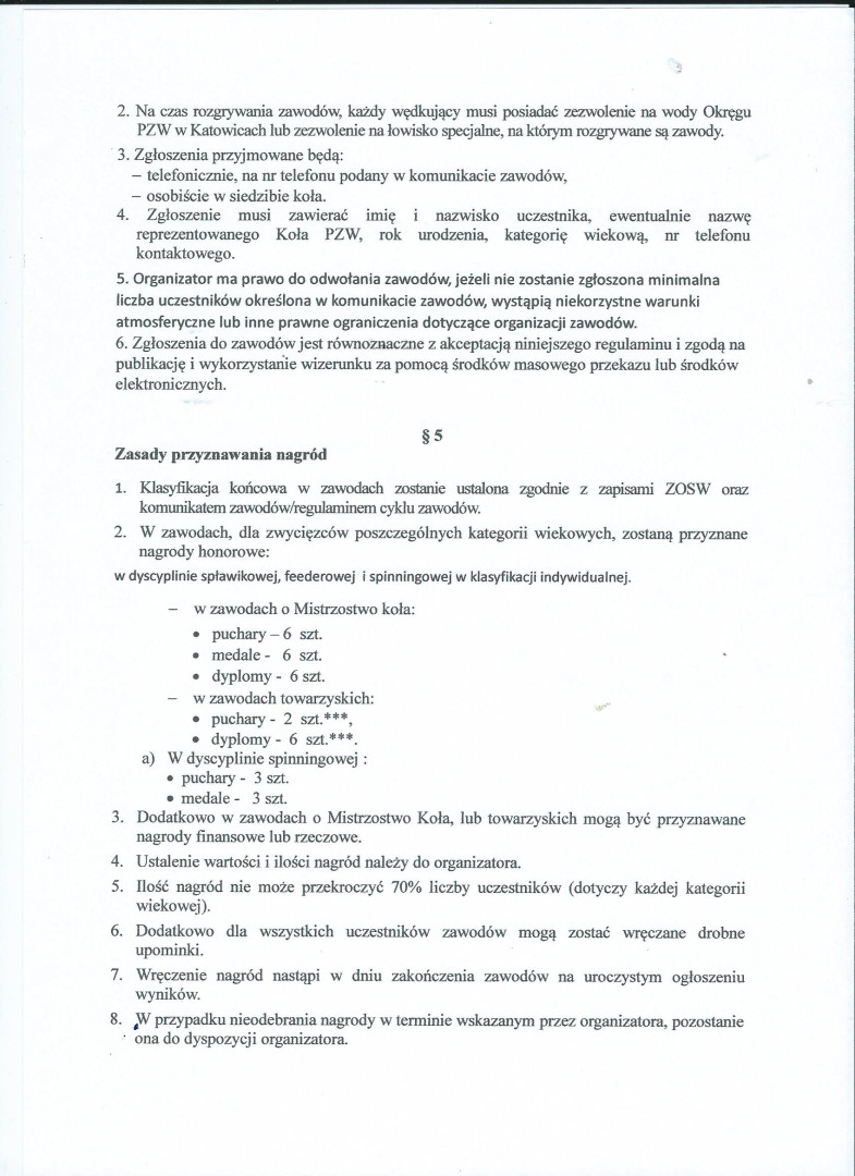 Regulamin zawodów wędkarskich Koła 80 na 2026 rok