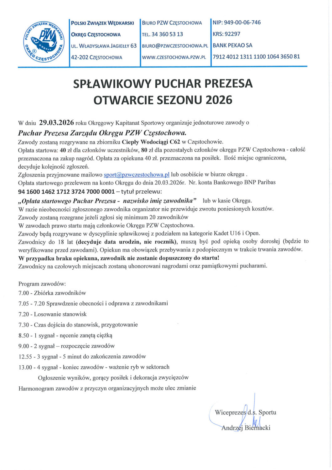 Spławikowe zawody „WIOSNA” 2026 r.